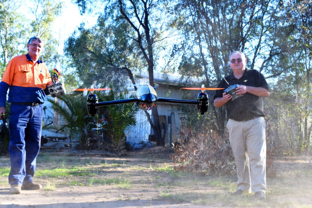 The pair is founding members of the Roma and District Aeromodelling Club, who take to the skies every Sunday with model planes, helicopters and other flying machines.