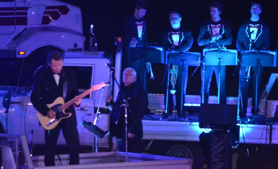 The appreciative large crowd loved it too as he donned the tuxedo and blasted out swing standards from the back of a ute accompanied by the big band sound of the Queensland Youth Orchestra performing as part of the Queensland Music Festival's Swingin' Utes.