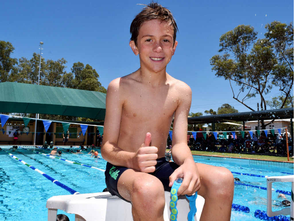 The youngster was showing off his swimming skills at the Wallumbilla Swimming Club's annual carnival on Saturday.